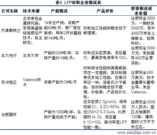 3.6 锂电池电解液厂家情况 综合来说,锂电池电解液是个需求量大,毛利率较高的部分,具有巨大的投资价值,现阶段国内市场上,江苏国泰华荣、珠海赛纬电子、天津金牛等公司具有一定的优势。 国泰华荣是江苏国泰(002091)控股的一家以有机硅材料、锂电池材料为发展方向的国家重点高新技术企业。公司装备技术、生产规模、技术水平和市场占有率在国内均处于领先地位。其电解液产品包括一次锂电池电解液、二次锂离子电池电解液、动力电池电解液和超级电容器电解液等。2008年公司电解液年产能达到3000吨,产能在国内排名第一,占国内30%市场份额,在全球排名第五位。目前公司在江苏扬子江化工园区新建了5000万吨产能,厂房已经建设完毕,预计09年10-11月正式生产。 珠海市赛纬电子材料有限公司是一家新成立的高科技民营企业,一期投资1000万元人民币新建产能为年产1000吨的锂电池,锂离子电池和超级电容器电解液生产线,厂区占地面积3000平方米,主要生产和销售功能型电解液:提高锂离子电池高温性能,安全性和低温性能等锂离子电池和聚合物电池电解液,为客户量身定制适用于锰酸锂、磷酸铁锂、三元材料,改性天然石墨等正负极材料的电解液。 天津金牛电源材料有限责任公司是由河北邢台矿业(集团)有限责任公司与天津化工研究设计院共同出资组建的。现已建成的成套的电解质盐生产、溶剂精制、电解液配制和包装生产线,主要产品有:六氟磷酸锂(规模为80吨/年)、高纯溶剂(规模为500吨/年)、锂离子电池用电解液以及相关电池材料。天津金牛公司是国内唯一一家采用自主研发技术、国产原料与装备生产六氟磷酸锂产品的企业。 3.7 电芯制造厂家情况 电芯生产由于生产工艺和技术相对成熟,在有稳定的正极材料货源情况下,国内大部分锂离子电池厂商均能生产出磷酸铁锂电芯,但由于制造动力电池涉及到电芯的组合,必须保证电芯的一致性,这样对电池的生产设备提出了更高更专业的要求,所以设备资金投入很大,一般来说,建设一条磷酸铁锂电芯生产线至少需要5000万元的启动资金。创业企业在进入这一领域会非常困难,传统的电池生产企业将具有较大的优势。下表列出了国内电芯生产的主要企业及其情况。 四、总结 磷酸铁锂电池市场是个规模巨大的市场,单纯正极材料,全球规模可以达到几百亿的规模,下游的电芯产业,规模可以超过5000亿。同时,中国在这个产业上,无论在技术,设备,原料和市场均有一定的积累,具有大力发展这个产业的基础。在时间点上,我们认为未来2-3年,磷酸铁锂电池将可能会有重大的技术突破从而带动市场的突破。从创业投资的角度观察,在磷酸铁锂电池的产业链上,我们认为在正极材料,隔膜,电解液上一些具有独特优势的企业将值得关注。 |